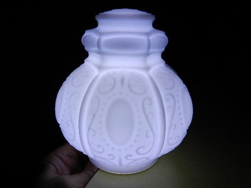 Title (ebay affiliate link): Vintage White Milk Glass Pattern Globe Ceiling Light Fixture Fantastic Condition