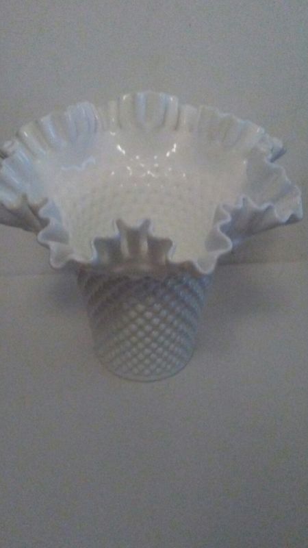 Title (ebay affiliate link): Vintage Large White Milk Glass Hobnail Vase Fluted Edge 8" X 9"...Excellent!