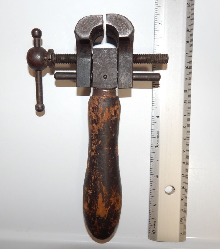 Title (ebay affiliate link): Vintage Adjustable Handheld Handscrew Clamp Vise Tool Wooden handle