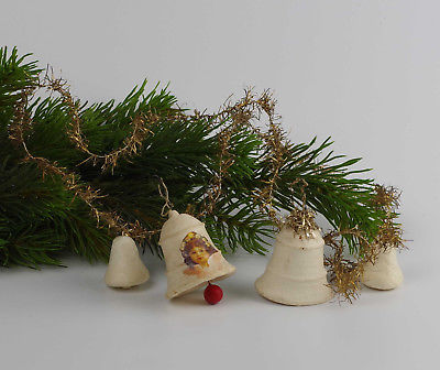3 x Vintage Spun Cotton Christmas Ornaments,bells,Czechoslovakia.