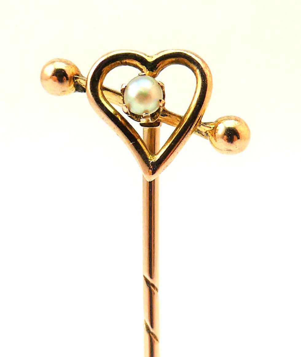 Title (ebay affiliate link): ANTIQUE 19th/20thC GENUINE SEED PEARL LOVE HEART 9CT GOLD STICK PIN BROOCH
