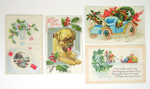 Title (ebay affiliate link): Lot of 4 - 1910 era lithographed Christmas post cards