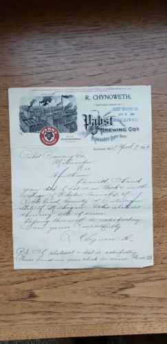 Title (ebay affiliate link): R. Chynoweth Rockland, Mich letter to Pabst Brewing Co Milwaukee 1899