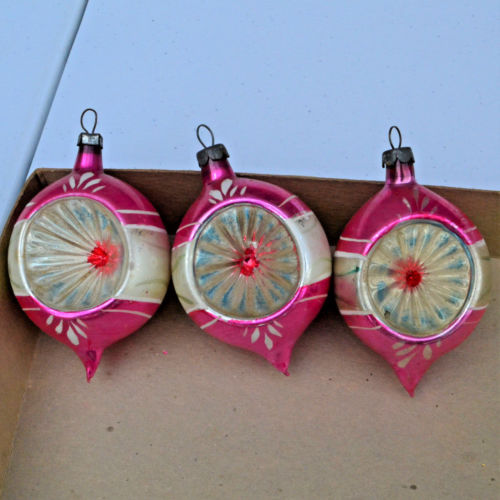 Title (ebay affiliate link): Vintage Mercury Glass Christmas Ornaments Lot of 3 Pink Teardrop Single Indent