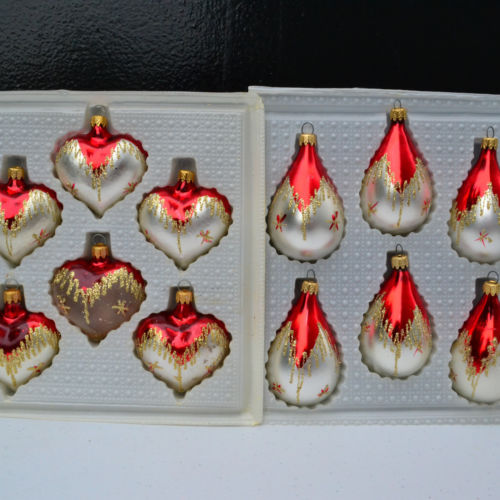 Title (ebay affiliate link): 2 Sets Rare Vintage Christmas Ornaments Kurt Adler Heart & Teardrop Red Silver