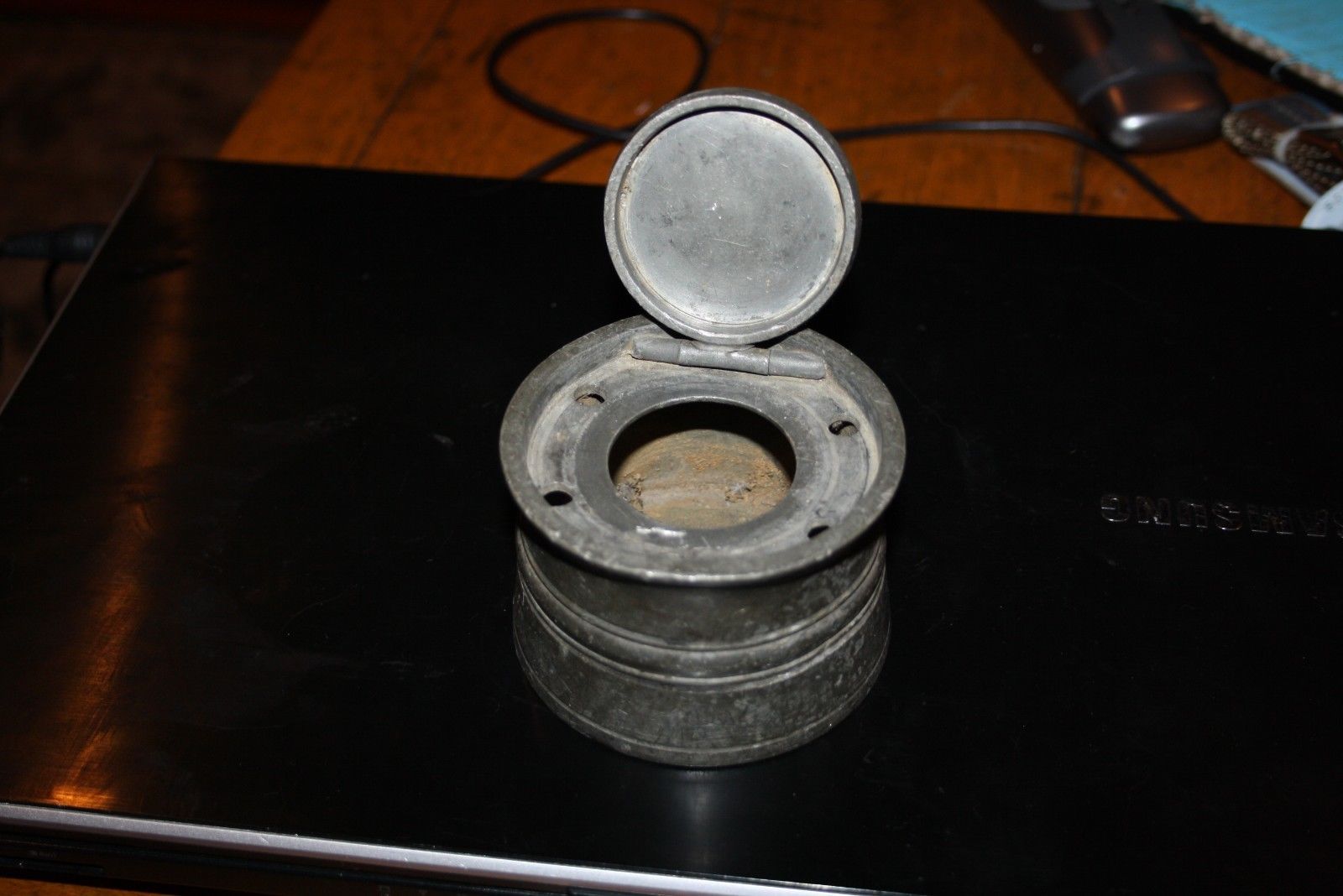 VINTAGE PEWTER INKWELL FOUNTAIN PEN QUILL CALLIGRAPHY WRITING