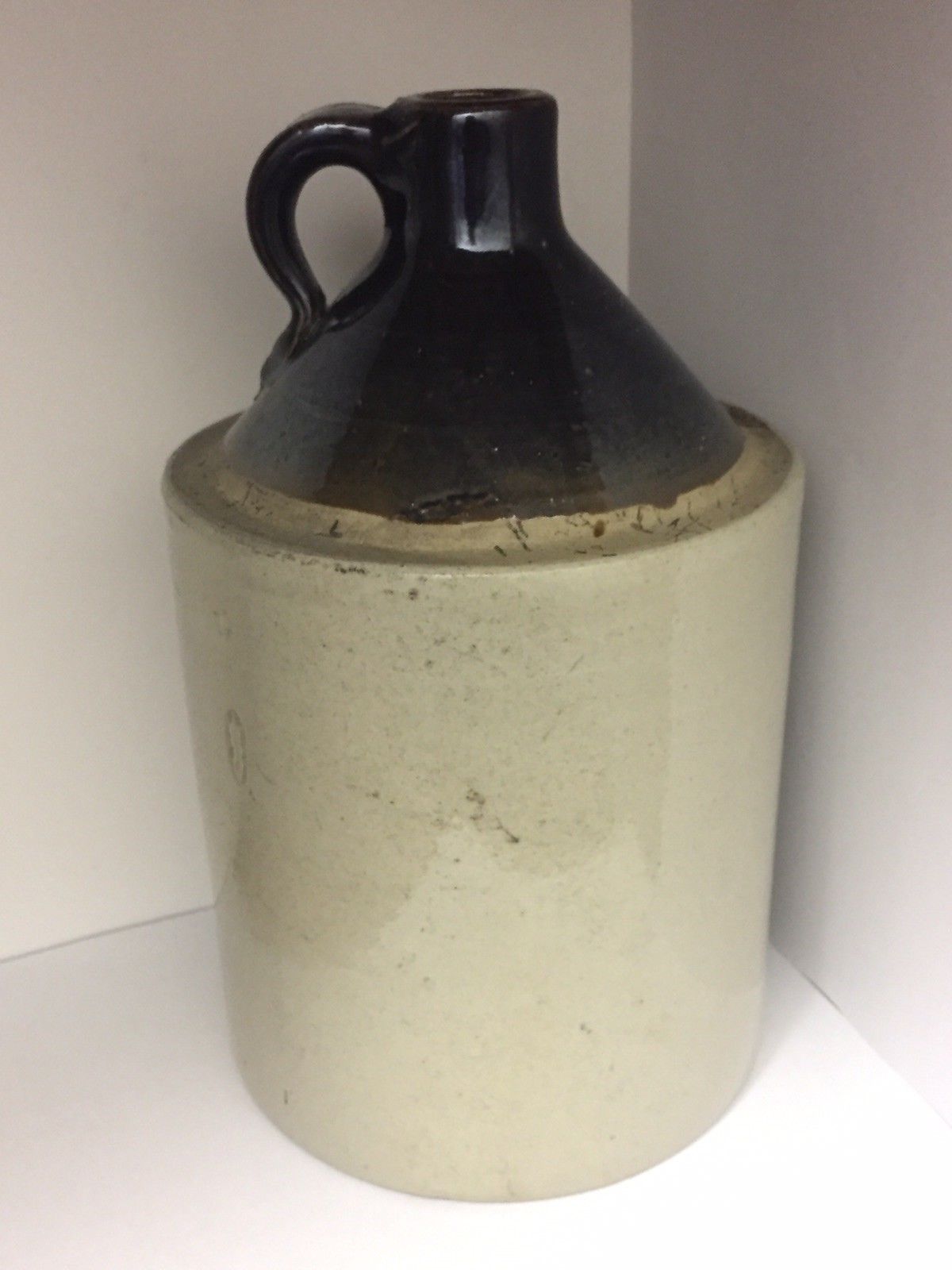 Vintage Brown & White Half Gallon Stoneware Jug