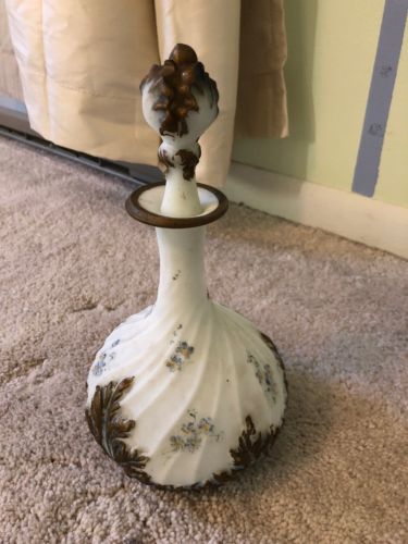 Title (ebay affiliate link): Antique Victorian Vanity Decanter Barber Bottle Hand painted Satin MilkGlass