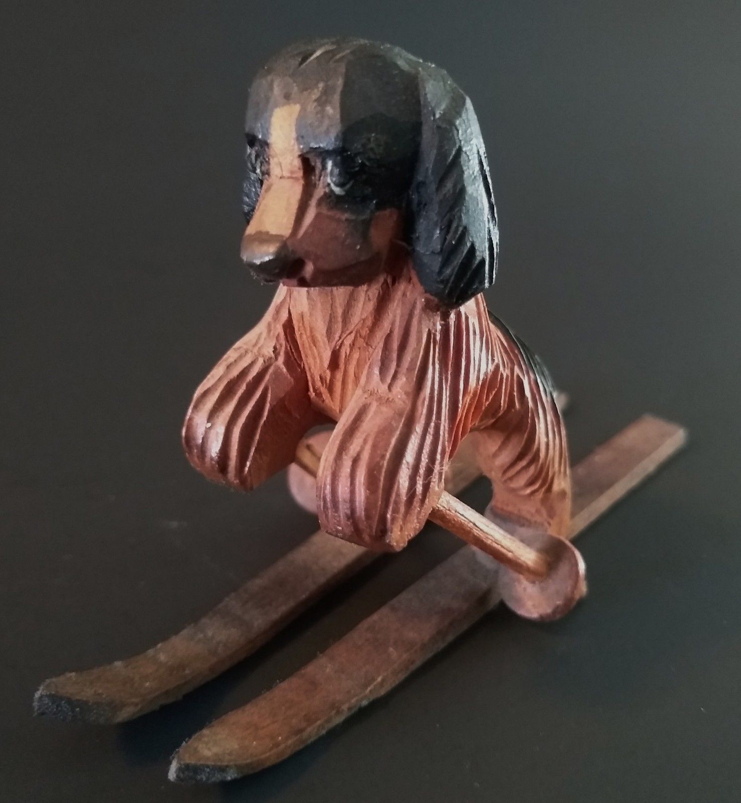 Title (ebay affiliate link): Vintage Carved Wood Dog Figurine RARE SKIER w/label Aspen, Colorado (Anri?)