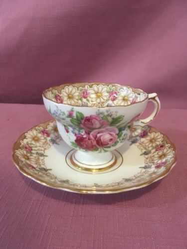 Title (ebay affiliate link): Rosina Tea Cup & Saucer Pink Rose Pattern Fine China England -Vintage AQ