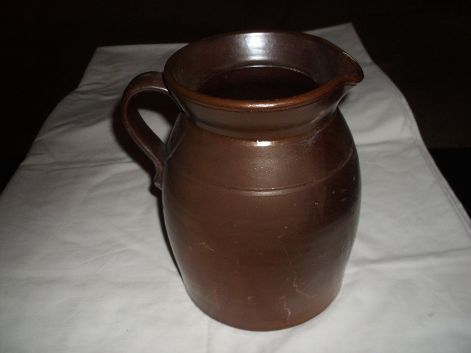 ANTIQUE BROWN STONEWARE PITCHER/EWER - APPROX. 9.5" HIGH & 8" WIDE