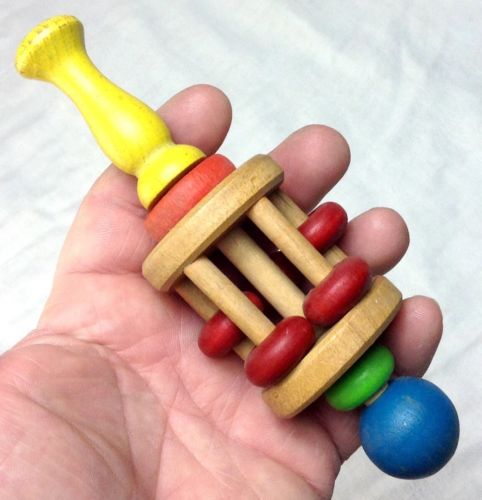 Title (ebay affiliate link): vintage colorful all wood hand made held spinning moving baby toy