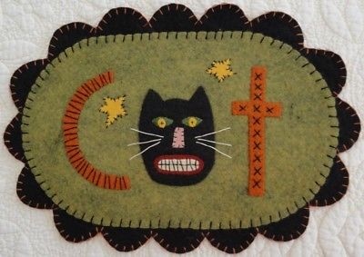 Title (ebay affiliate link): pRiMiTiVe Wool Felt Penny Rug~Halloween~October~Black Cat~Fall~Autumn~C~A~T~