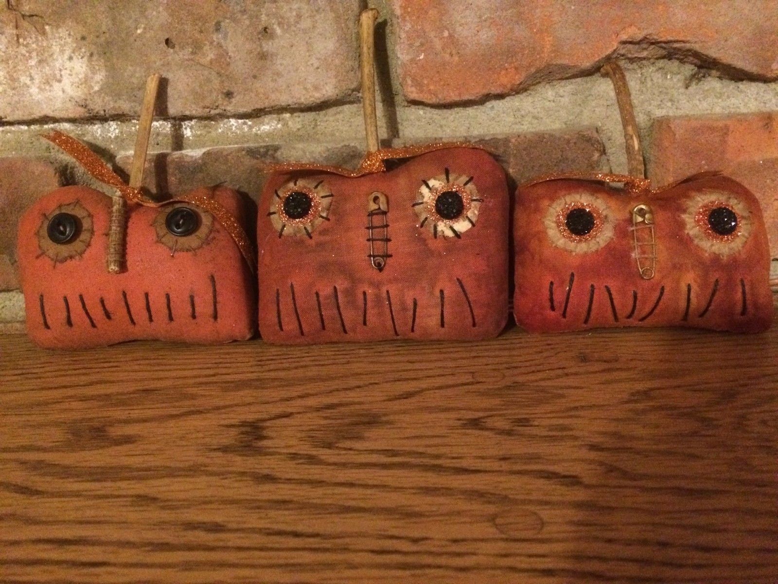 Lot of 3 Primitive OOAK Halloween Jack O''Lantern JOL Shelf Sitter Bowl Filler