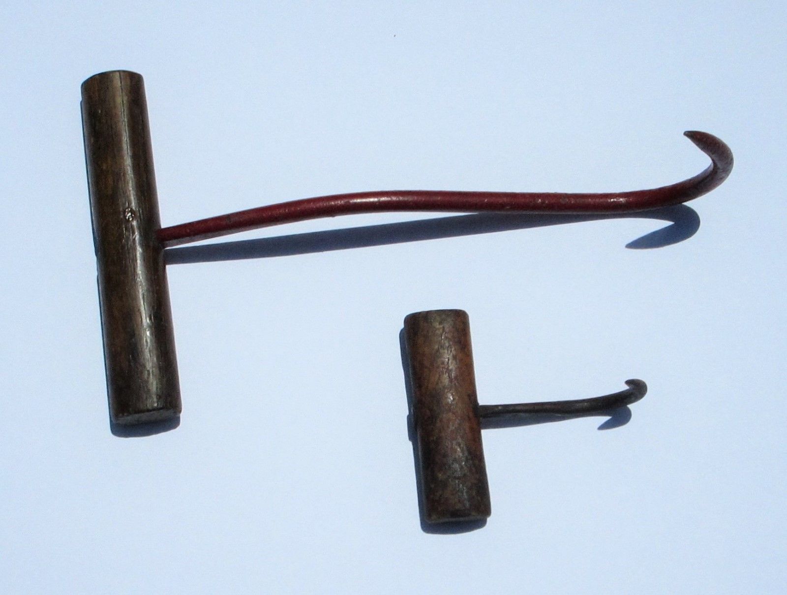 Vintage hay hooks, set of 2,wood and metal, sturdy & rustic, for display or use