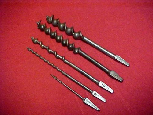 Title (ebay affiliate link): 5 VINTAGE VINTAGE WOOD AUGER DRILL BITS FOR LARGER DRILLS OR HAND BRACES