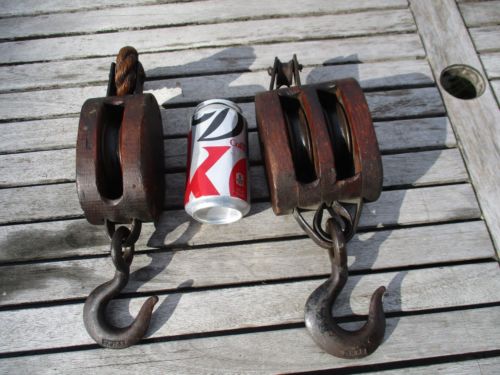 Title (ebay affiliate link): 2 VTG ANTIQUE WOOD BLOCK TACKLE PULLEY FARM BARN SHIP BOAT NAUTICAL TOOL
