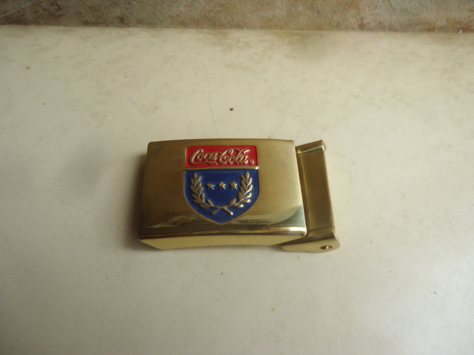 Title (ebay affiliate link): Coca Cola Metal Belt Buckle 2 x 1" Gold/Red/Blue
