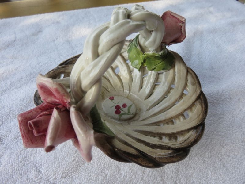 Title (ebay affiliate link): Capodimonte Petite Italian Made Ceramic Rose Basket - Beautiful Condition