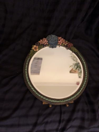Title (ebay affiliate link): Antique, Vintage, Barbola Flower Mirror with ribbon border / Pink faded roses.