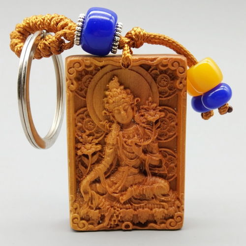 Title (ebay affiliate link): 1.8" Handmade Cedar Netsuke Comfortable Guanyin Natural Wood Key Chain Pendant