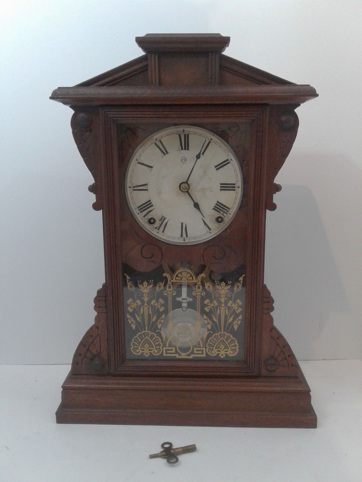 ANTIQUE S.THOMAS WALNUT MANTEL CLOCK DEC.28 1875