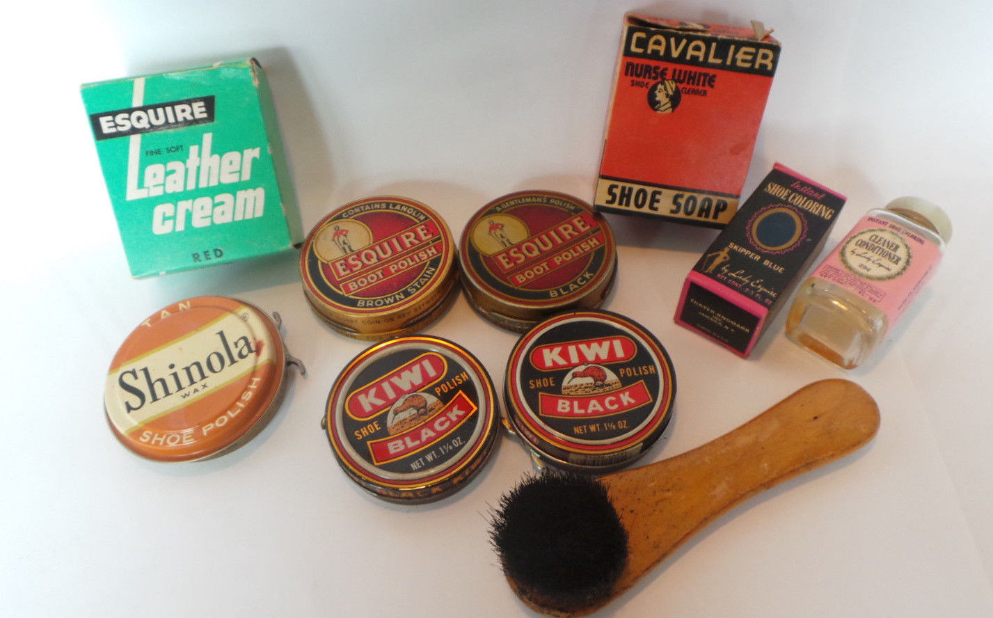 Title (ebay affiliate link): Lot of Vintage Shoe Boot Polish Tins KIWI Esquire Shinola and more..Empty/Dry