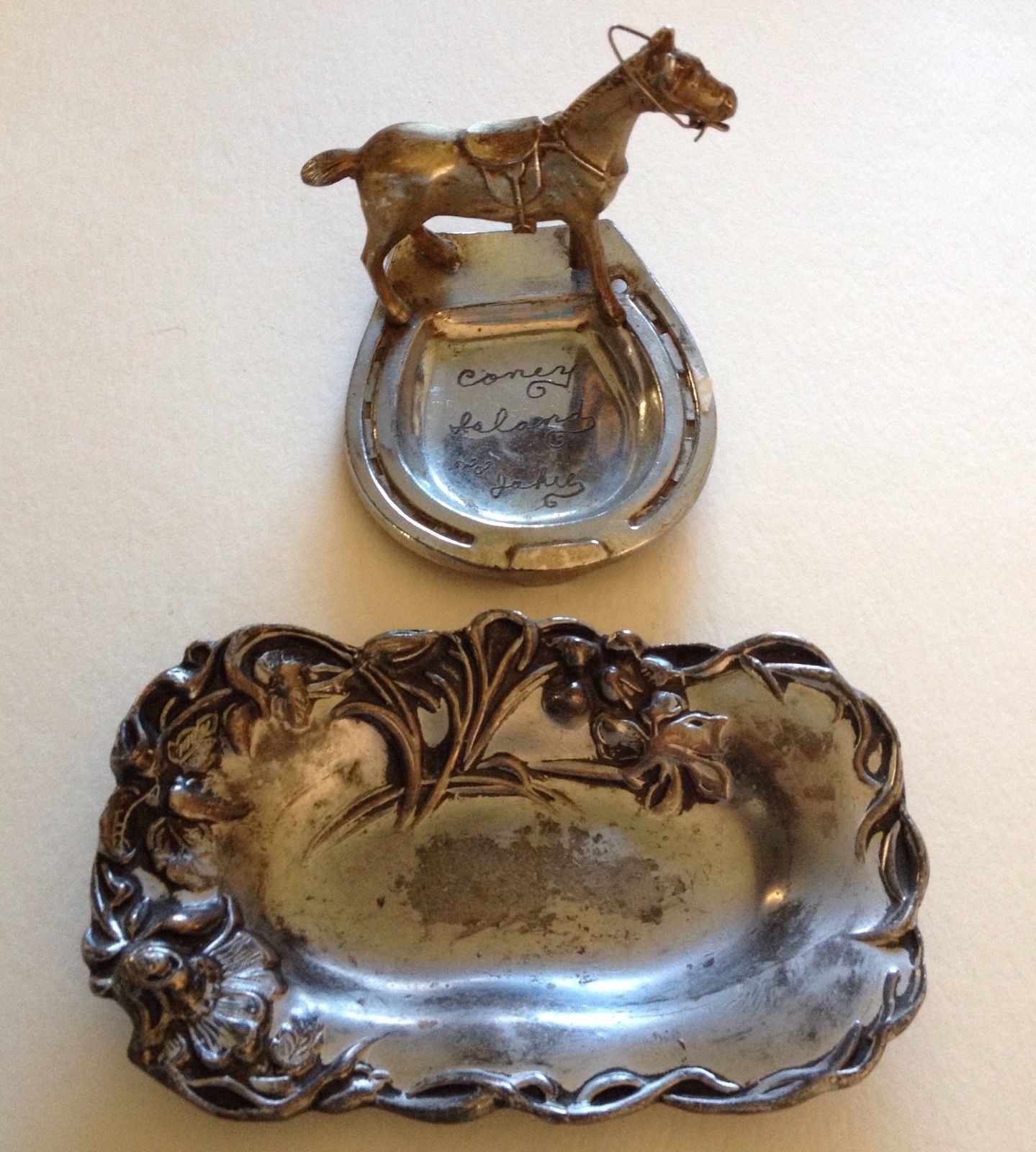 Coney Island 1800''s Vintage Antique 2 Souvenirs Horse and Jewelry Dish