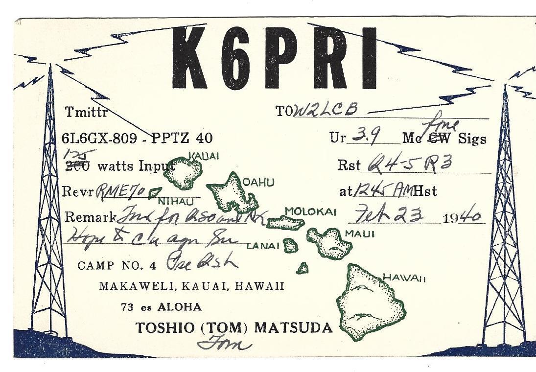 QSL 1940 Makaweli Kauai Hawaii radio card