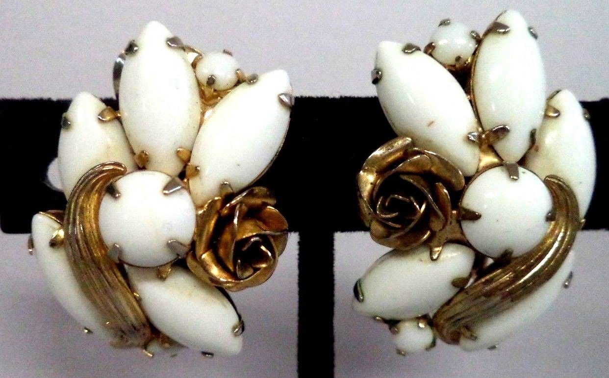 Title (ebay affiliate link): *RARE* VINTAGE ESTATE SIGNED WEISS MILK GLASS FLOWER 1 1/4" CLIP EARRINGS! G186A