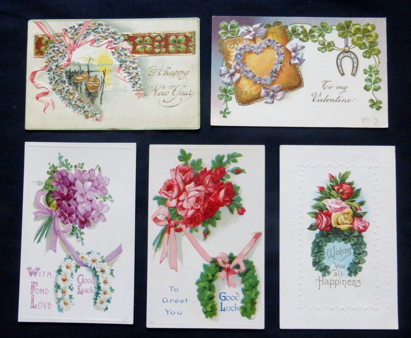 Title (ebay affiliate link): lot of 5 Vintage Post Cards: FLORAL MIX Horse shoes #2758
