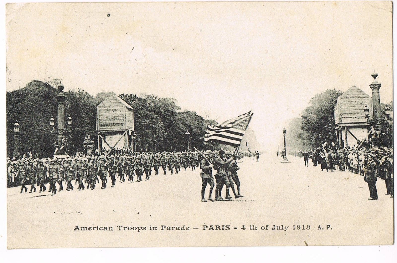 Title (ebay affiliate link): ANTIQUE MILITARY Postcard AMERICAN TROOPS IN PARADE - PARIS - JULY 4TH, 1918