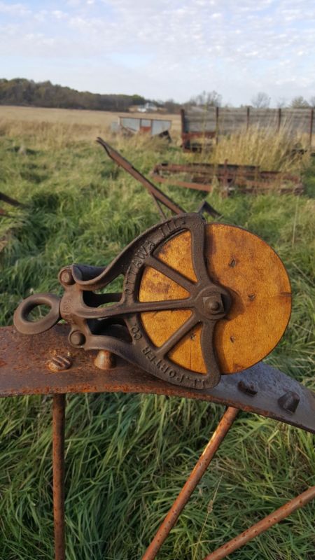 Title (ebay affiliate link): Vintage Cast Iron wood Barn Rope Pulley hay sling Rustic wheel Farm loft decor