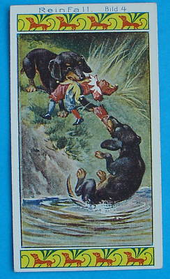 2 DACHSHUND AND A DOLL CHOCOLATE CARD ca1900