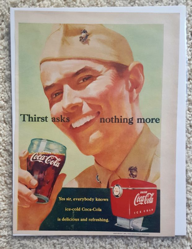 Title (ebay affiliate link): Vintage Coca Cola 1951 POST WWII Ad Store Sign "YOUNG HAPPY SOLDIER"