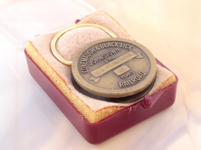 Title (ebay affiliate link): VINTAGE CONEMAUGH & BLACK LICK RAILROAD JOHNSTOWN PA "25 YEAR SERVICE KEYCHAIN