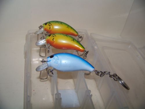 Title (ebay affiliate link): LOT: FUN LOT: 3 KEYCHAIN LURES, 2" EACH, CAN BE HOOKED AND USED