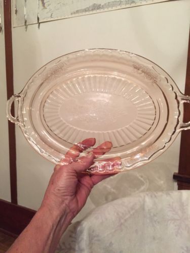 Title (ebay affiliate link): Pink Depression Glass Floral 2 Handles Oval Serving Platter Plate Desert Cake