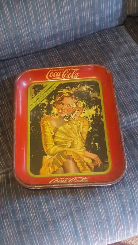 Title (ebay affiliate link): Original 1930 Coca Cola Antique Tray Meet Me At The Soda Fountain Telephone Girl