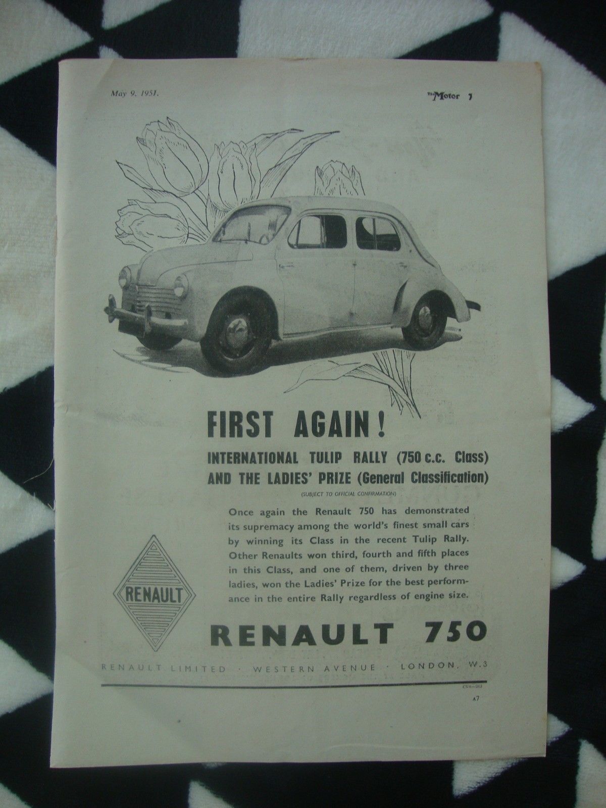 Title (ebay affiliate link): 1951 Renault 750 CV4 English Original Magazine Advertisement 2