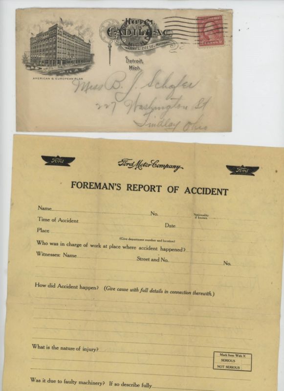 Mr Fancy Cancel Hotel Cadillac Detroit Mich 1917 Ltr on accident reports #2769