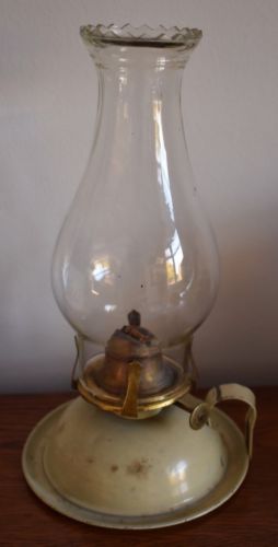 Title (ebay affiliate link): OLD CHAMBERSTICK OIL LAMP WITH GLASS CHIMNEY - Working Order