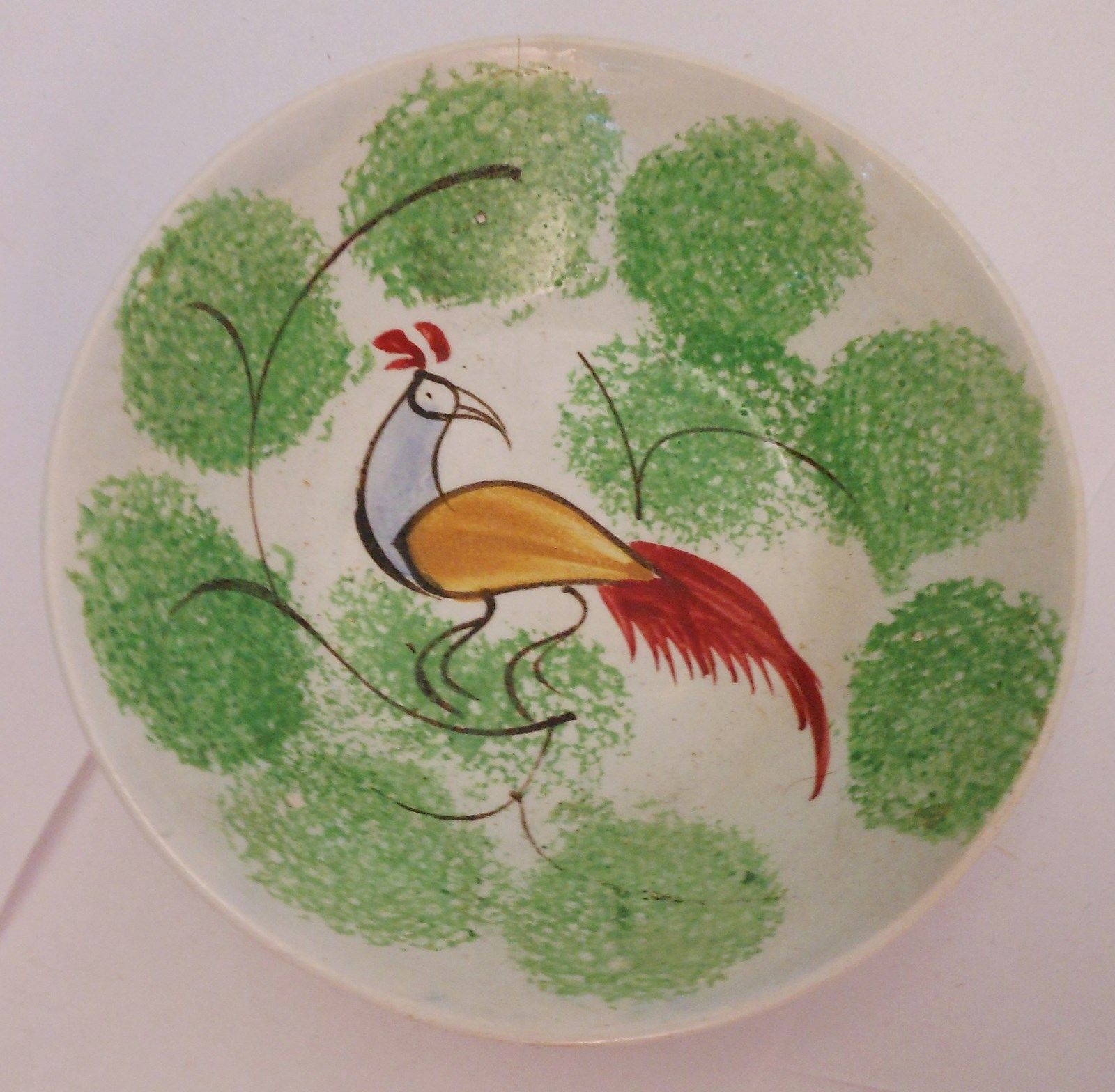 Great Antique Green Peafowl Spatterware Saucer
