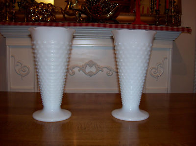 Vintage Hobnail Milkglass Trumpet Vases Anchor Hocking