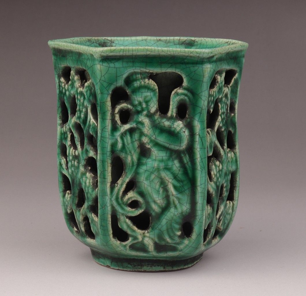 Valuable porcelain tea bowl cup hollowout belle women blow flute piano dance old