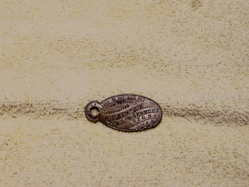 Vintage Old Antique Brass Key Chain ID Tag Fob Drop In Any Mail Box-MARION OHIO