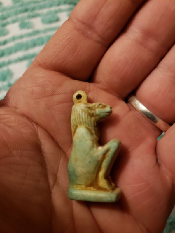 Title (ebay affiliate link): ANCIENT EGYPT , FAIENCE AEGIS AMULET. 600 - 300 B.C