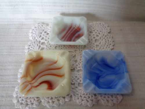 3 VINTAGE AGATE? SMALL SLAG ASHTRAYS