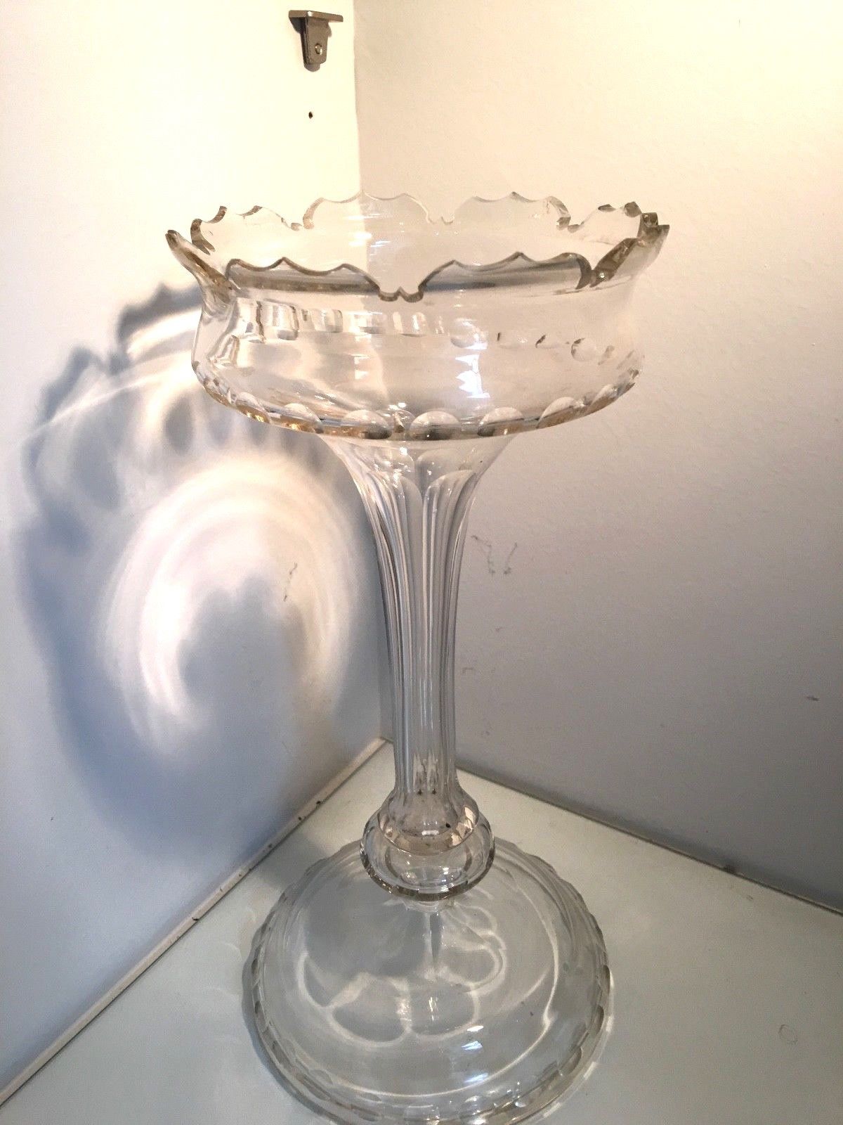 antique cut glass oil lamp base pedestal