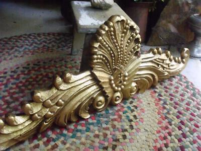 Gorgeous Vintage CARVED WOOD Pediment Shabby Gold Finish